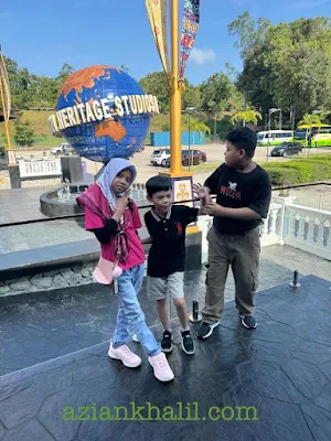 Jadi, anak anak pun sibuk nak bergambar depan globe tu,